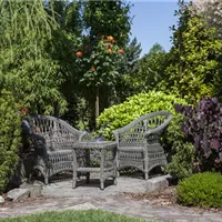 Beim Thema Sitzplatz denken die meisten als erstes an eine großzügige Terrasse, die direkt am Haus und am besten in südlicher Ausrichtung liegt. Aber warum soll das schon alles sein? Erst durch verschiedene Sitzmöglichkeiten und damit variierenden Blickwinkeln erlebt man den Garten viel intensiver. Außerdem kann man so auf unterschiedliche Bedürfnisse und die jahreszeitlichen Veränderungen eingehen. Bei Höchsttemperaturen im Sommer wünscht man sich beispielsweise eher ein schattiges Plätzchen, während man im Frühling und Herbst jeden Sonnenstrahl aufsaugen will. Denken Sie also ruhig weiter als nur bis zur Terrasse. Wie wäre es zum Beispiel mit einem einfachen Klappstuhl und einem Bistrotisch, die schnell mal ans duftende Beet gerückt werden? Oder eine Hängematte, die im lichten Schatten zweier Bäume zum Träumen einlädt? Leichte Möbel, die problemlos zu transportieren sind, geben Ihnen dabei Flexibilität.