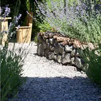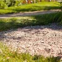 Eine ebenfalls einfache Alternative sind Kieswege. Man braucht dafür nur an den entsprechenden Stellen die Grasnarbe auszuschachten und den Weg mit Kies aufzufüllen. Ideal ist eine mittlere Größe. Auch hier hat man den Vorteil, dass durch die Steine das Wasser gut abgeleitet wird; allerdings muss dafür die Schicht des Kieses dick genug sein. Bildet sich im Kiesweg mit der Zeit Gras, kann man dieses auch wachsen lassen und über den Weg mähen. Es bleibt dann aber der Vorteil, dass man bei Nässe nicht versinkt oder Matsch hinterlässt. Denn die Trittfestigkeit bleibt im Kies auch unter Gras erhalten.