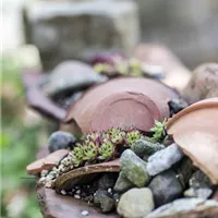 Ganz gleich ob das Gefälle künstlich aufgeschüttet wurde oder ob es bereits natürlich vorhanden ist, entscheidend für das Gelingen eines Steingartens ist die Drainage. Denn die meisten Steingartenpflanzen vertragen keine Staunässe. Um einen guten Wasserablauf zu gewährleisten, kann eine dicke Schicht aus Kies, Schotter beziehungsweise auch Mauerbruch aufgeschüttet werden. Auf diese Drainageschicht kommen dann die dekorierenden Steine. Dafür können nahezu alle Steinarten genutzt werden: Lavagranulat, Granit, Schiefer, Jurakalkstein oder andere. Die jeweilige Steinart will wohl überlegt werden. Denn bei dieser sollte es später – bei einer eventuellen Erweiterung – auch bleiben. Vom wilden Mischen verschiedener Gesteinsarten ist abzuraten. Auch was die Form und Größe der einzelnen Steine betrifft, ist es besser eine gewisse Einheitlichkeit zu wahren. Schließlich soll der Steingarten später insgesamt ein harmonisches, natürliches Bild ausstrahlen.